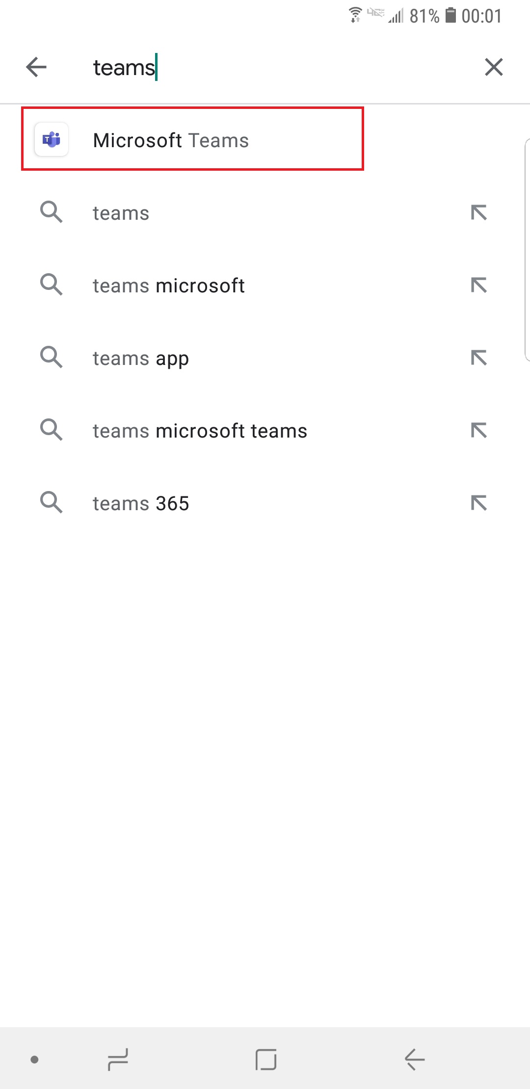 (trên iPhone hoặc iPad) gõ vào ô tìm kiếm từ khóa “teams”, chọn vào phần mềm Microsoft Teams ở phần gợi ý kết quả: